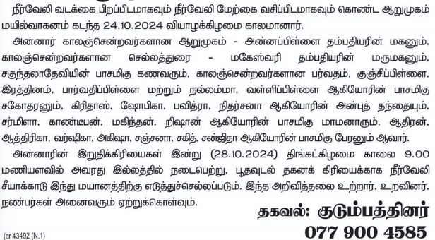 Obituaries - மரண அறிவித்தல்