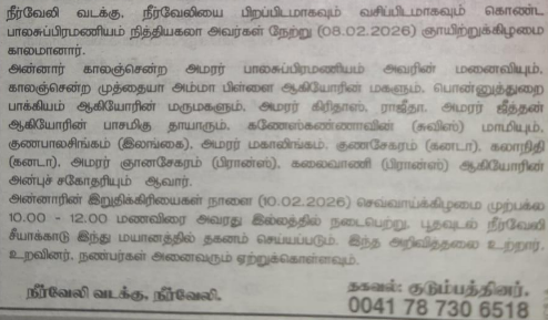 தோற்றம் 30 JUL 1965***மறைவு 08 FEB 2026