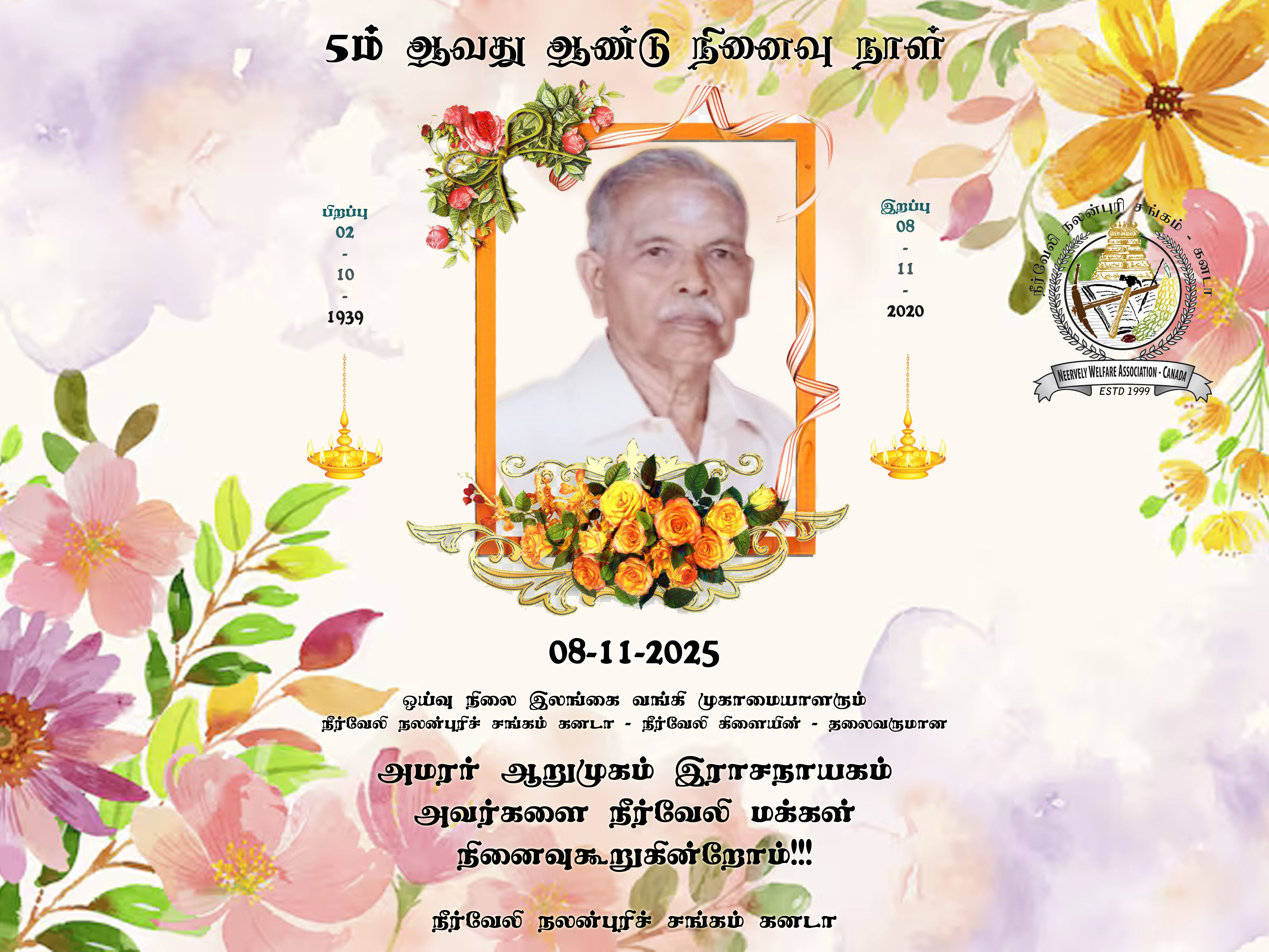 5ம் ஆவது ஆண்டு நினைவு நாள்:அமரர் திரு ஆறுமுகம் இராசநாயகம்