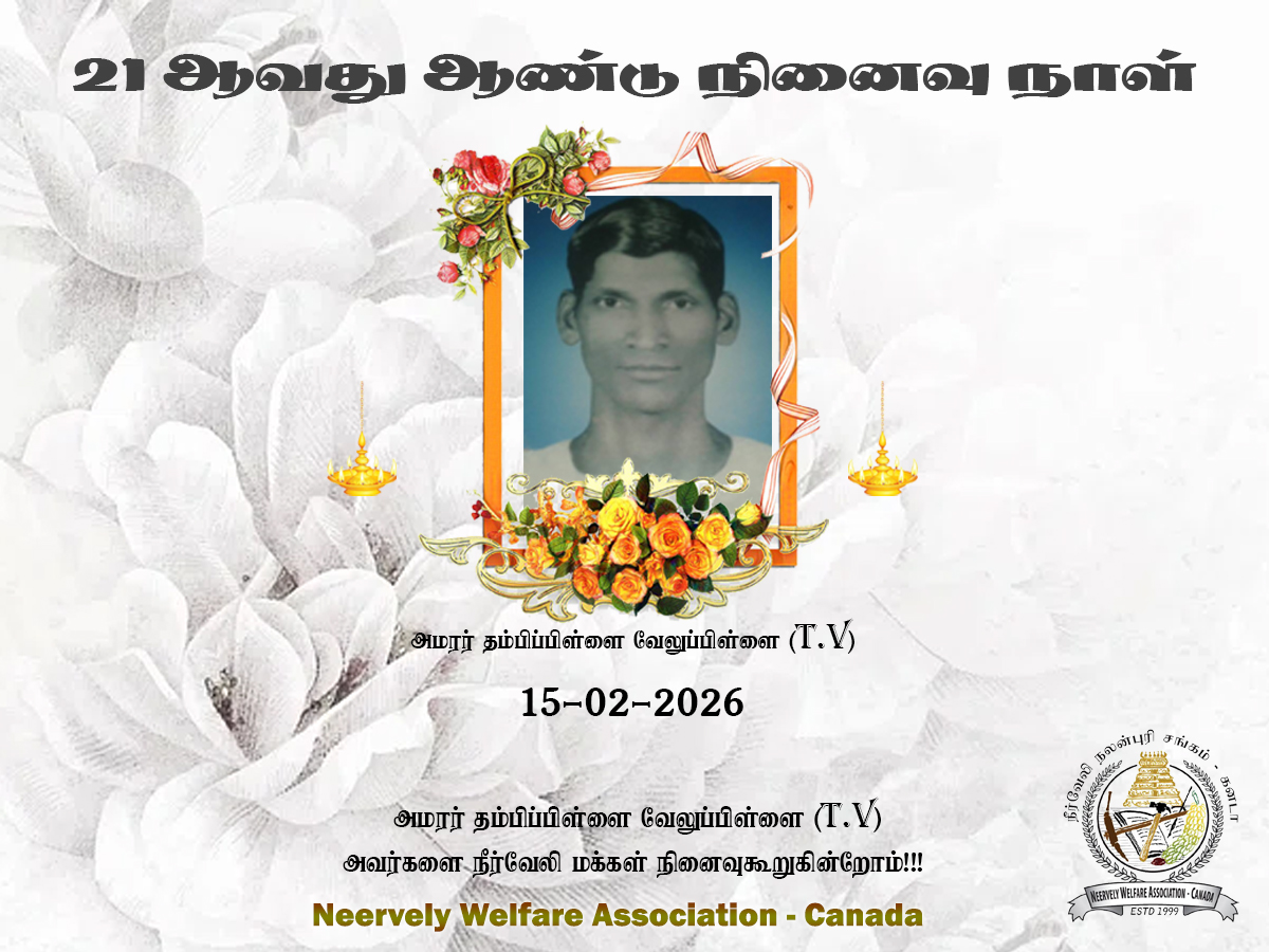 21 ஆவது ஆண்டு நினைவு நாள்: அமரர் தம்பிப்பிள்ளை வேலுப்பிள்ளை (T.V)
