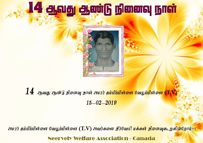 14 ஆவது ஆண்டு நினைவு நாள்: அமரர் தம்பிப்பிள்ளை வேலுப்பிள்ளை (T.V)