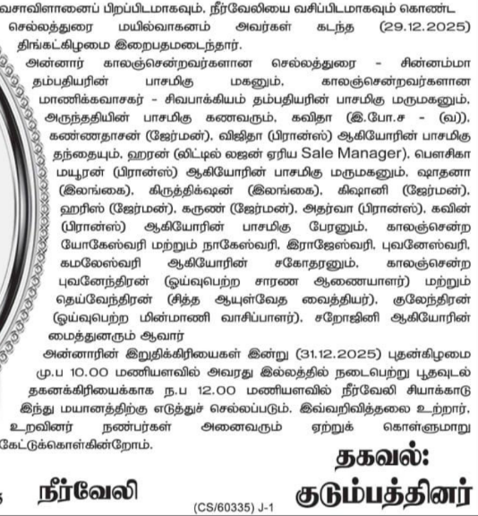 தோற்றம் 05 JAN 1940***மறைவு 29 DEC 2025