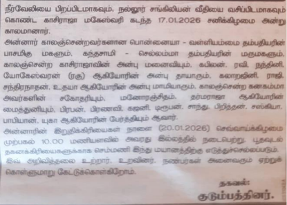 தோற்றம் 09 MAY 1936***மறைவு 17 JAN 2026